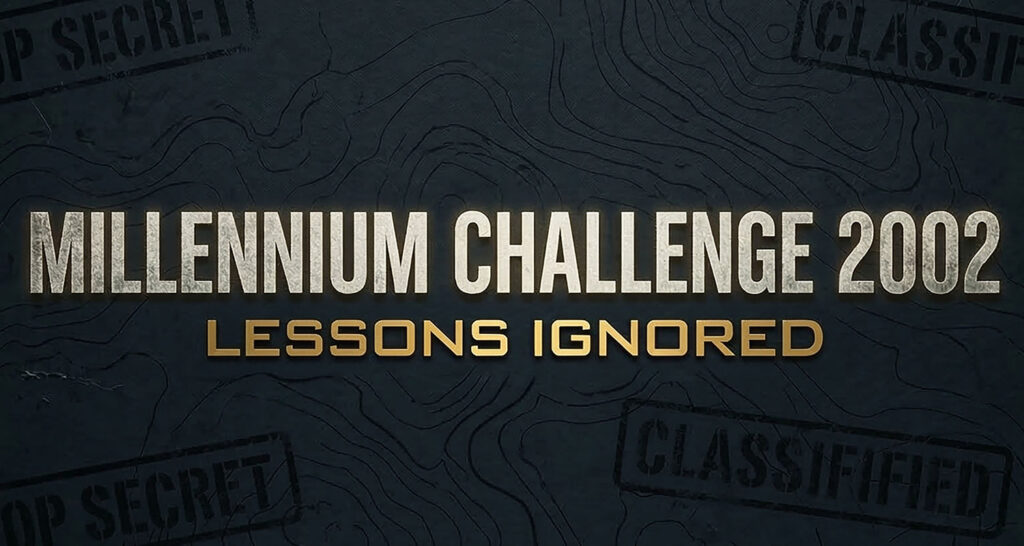 Analyzing the outcomes of Millennium Challenge 2002 and their implications for modern asymmetric naval warfare and IRGC-N swarm tactics.