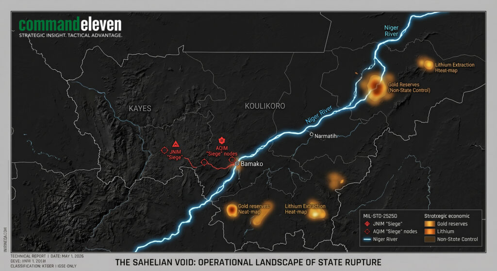 A clinical audit of the JNIM/AQIM administrative seizure of Mali. Deconstructing the collapse of Bamako, regional contagion risks, and the interdiction of gold and lithium supply chains.