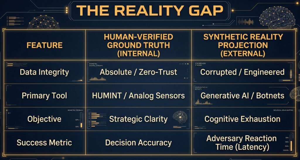Deceptive Architecture is the “invisible terrain” of the modern battlespace. In 2026, the commander who trusts their raw digital feed has already lost. Superiority now belongs to the actor who can anchor their intelligence in Human-Verified Ground Truth while simultaneously projecting a synthetic reality that consumes the adversary’s cognitive bandwidth.