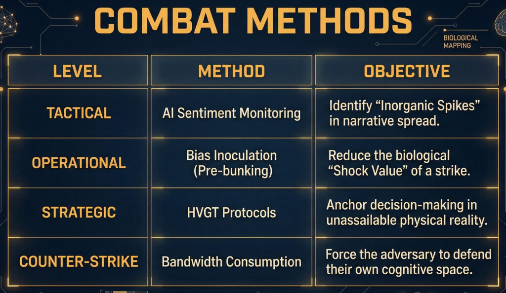 - Pre-bunking (Inoculation): Just as a vaccine introduces a weakened virus to build immunity, “pre-bunking” exposes a population to a weakened version of a deceptive narrative before the actual strike. By explaining the tactic (e.g., “The adversary will try to use this specific fear to divide you”), the biological impact of the real strike is neutralized.