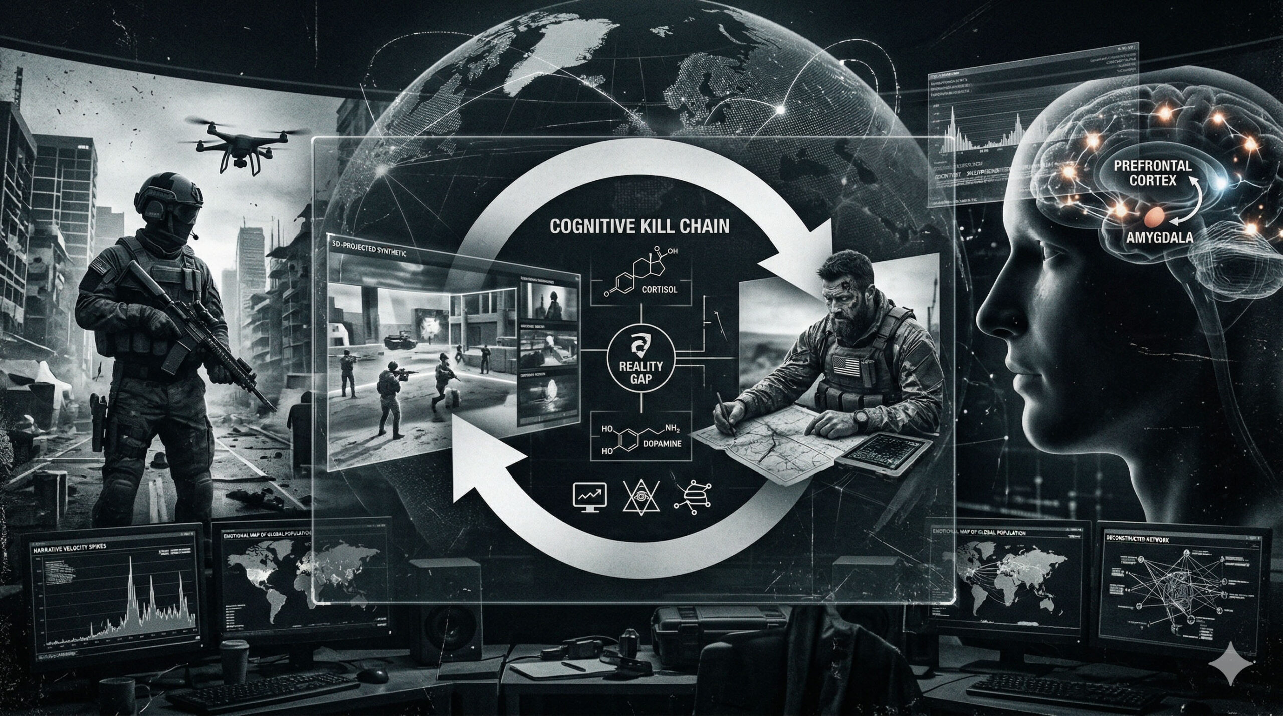 - The Cognitive Kill Chain: A four-phase biological siege (Infiltration, Destabilization, Re-Wiring, Terminal Effect) designed to strip a target of strategic autonomy.