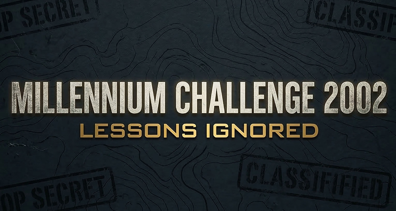 This strategic analysis provides a comprehensive review of the exercise’s objectives, command structures, assets deployed, tactical engagements, the politically driven reset conditions, and the final sanitized outcome. It then evaluates the lessons that were learned versus those that were deliberately suppressed or ignored — and maps those findings against the strategic landscape of contemporary US-Iran tensions, where the conditions Van Riper exploited in 2002 remain substantially unchanged.